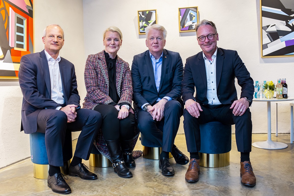 Jochen Kurrle (Senior Projektpartner; Drees [&] Sommer), Alexandra Iwan (Inhaberin; PR + Presseagentur textschwester Immobilienkommunikation), Ullrich Sierau (Oberbürgermeister; Stadt Dortmund), Stefan Heselschwerdt (Partner; Drees [&] Sommer) diskutierten beim ersten Städte-Talk von Drees [&] Sommer zum Thema Digitalisierung und Stadtentwicklung in Dortmund.