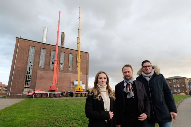 Projektentwickler Greyfield setzt den Startschuss für den Bau am Kesselhaus: Heute wurden die ersten Maßnahmen umgesetzt und die Schornsteine vom Dach des Kesselhauses heruntergenommen. Mehr erfahren