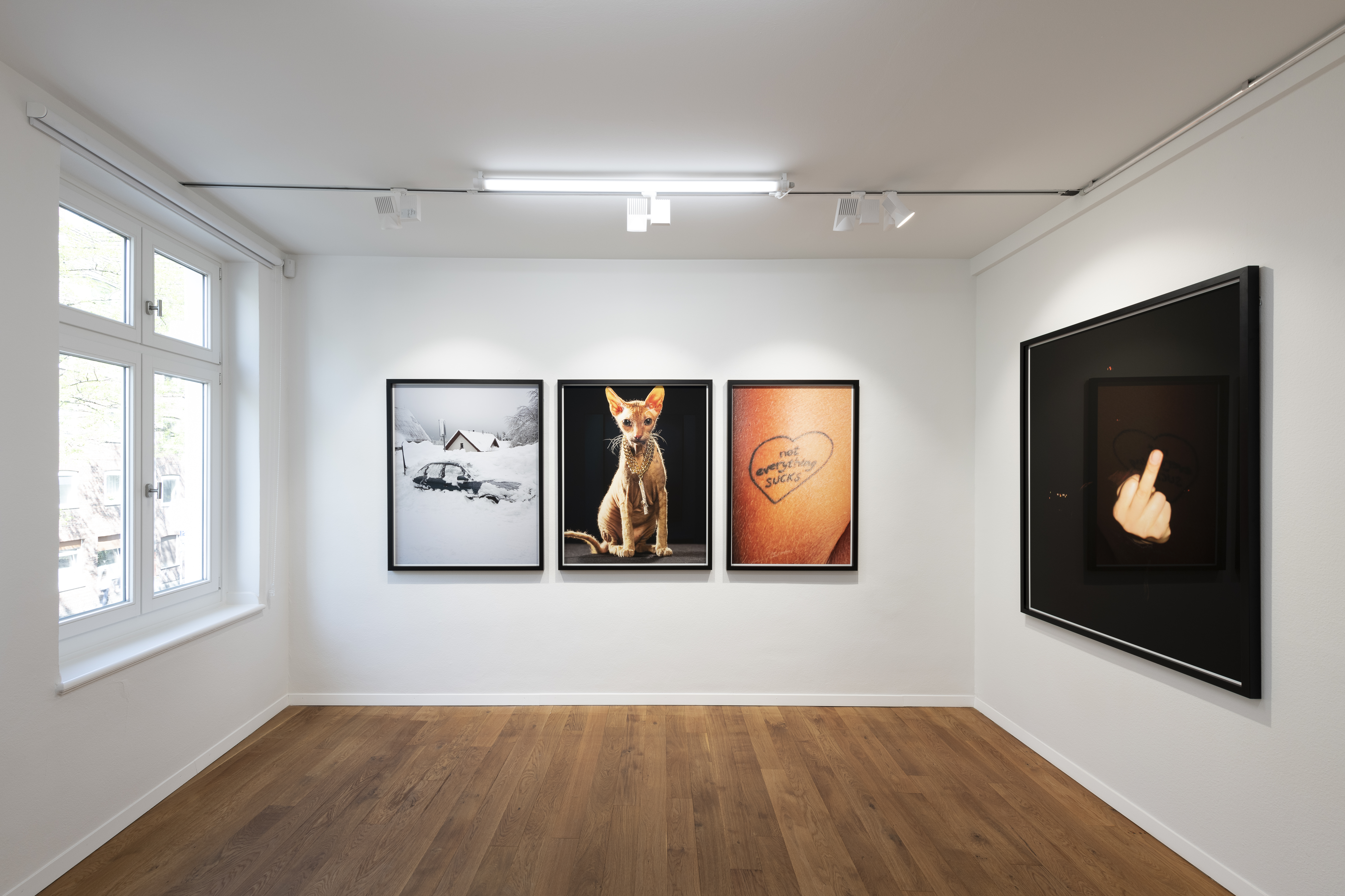 The images show impressions of Lennart Brede's exhibition "Because You Want To Be Loved" at Anna Laudel Gallery in Düsseldorf.