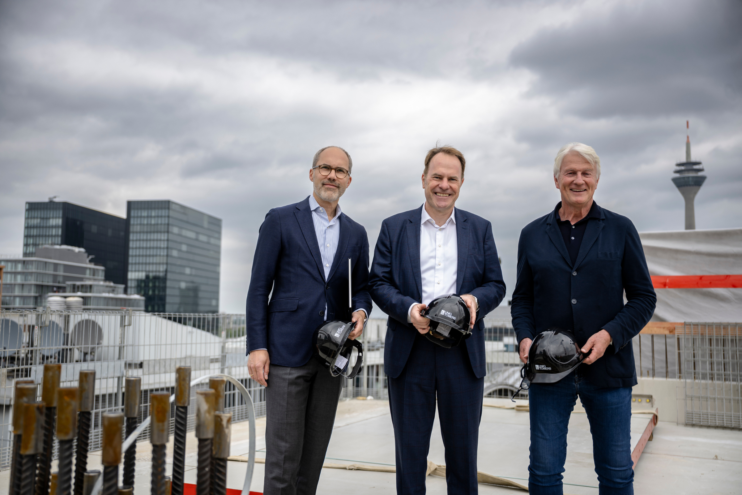 took a look at the current construction progress. Lord Mayor Dr. Stephan Keller is enthusiastic about the development of the Medienhafen and the tech concept of UNIQ TOWERS: