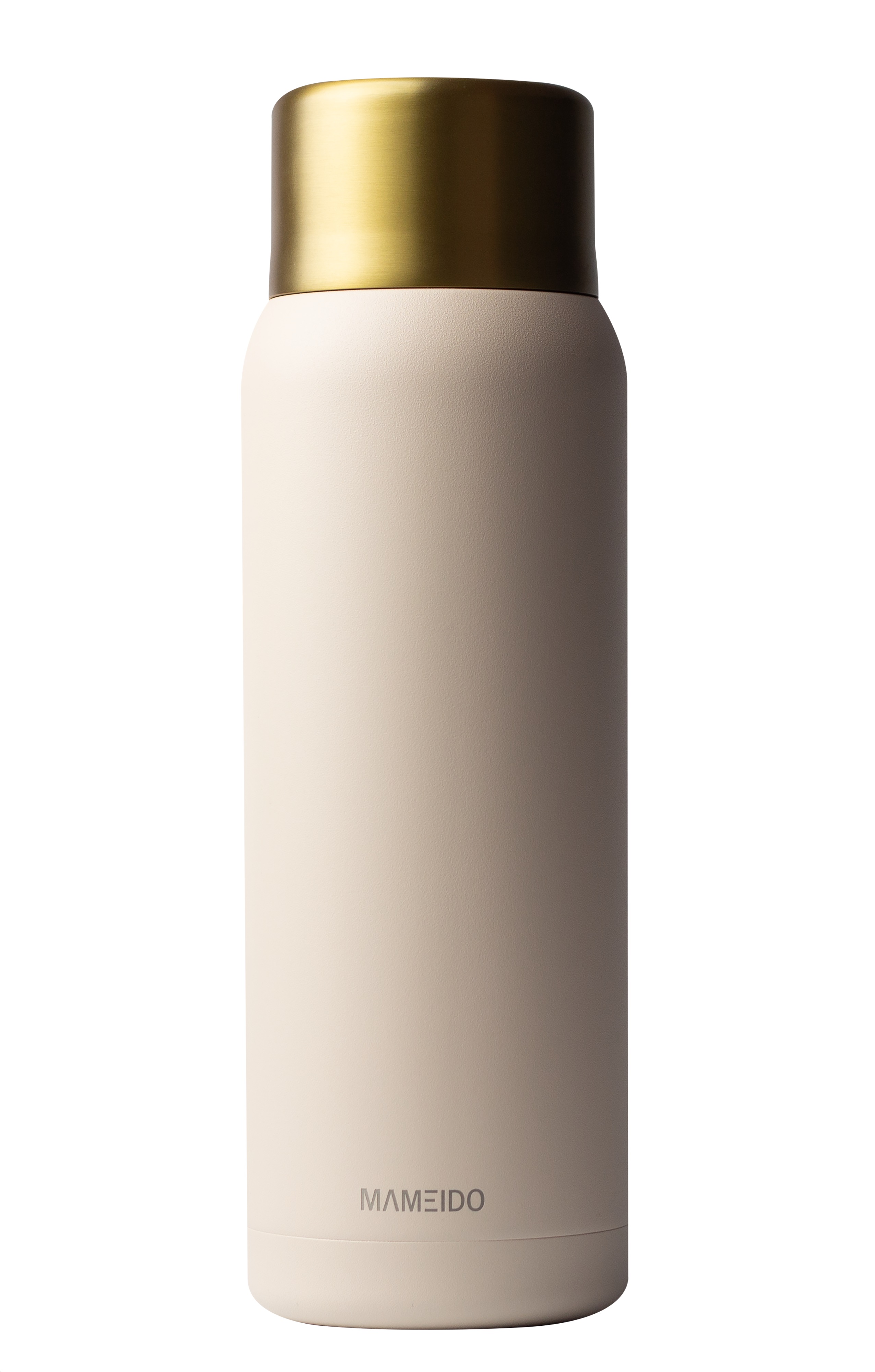 The new, stylish MAMEIDO thermos flask with mug is the indispensable companion for the hustle and bustle of everyday life. A design piece with functionality, style and a sense of sustainability. The stylish thermos flask with practical drinking cup and leak-proof screw cap with gold-plated push button keeps drinks hot for up to 12 hours or cold for up to 24 hours. With double-walled, high-quality stainless steel, the thermos flask promises first-class quality, is 100% food-safe, BPA and pollutant-free - and therefore particularly durable.