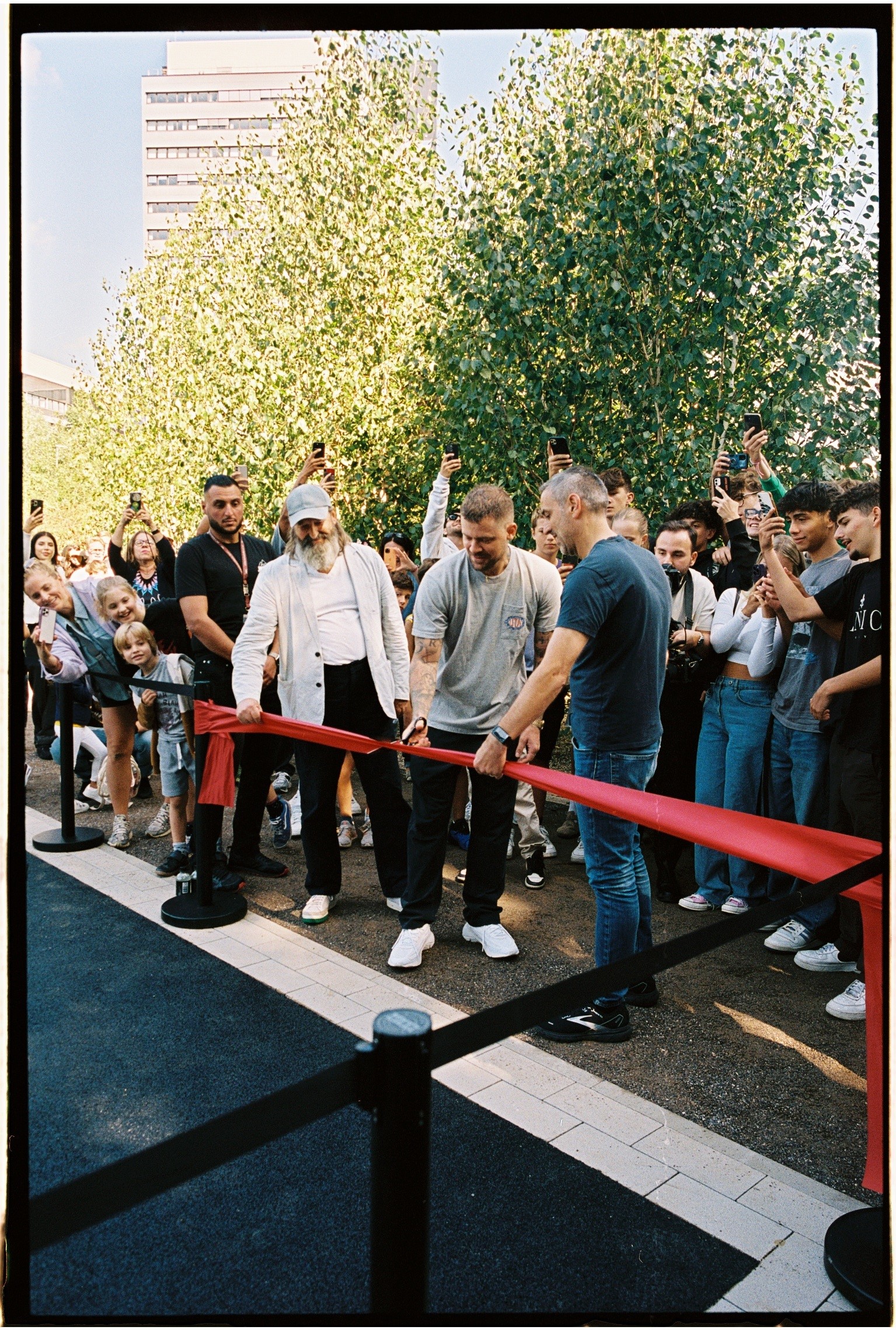Big, black, in the middle of Flingern - and very popular: hundreds of fans stormed the first basketball court of their favorite brand LFDY and were able to play right away. Many young people as well as families with children waited in a long line at the opening of the new LFDY basketball court in Düsseldorf-Flingern. And not without reason: Every basket hit was rewarded with a piece from the new collection - including around 300 T-shirts and hoodies from the streetwear brand. Many didn't want to miss the chance to win the coveted pieces and lined up in the usual LFDY nonchalance. The party for the community was accompanied by cool DJ sounds and free burgers from What's Beef. In addition, all Düsseldorfers as well as basketball and sports enthusiasts could watch the show match of the 3x3 basketball team "Düsseldorf LFDY", which recently won the German championship, live.