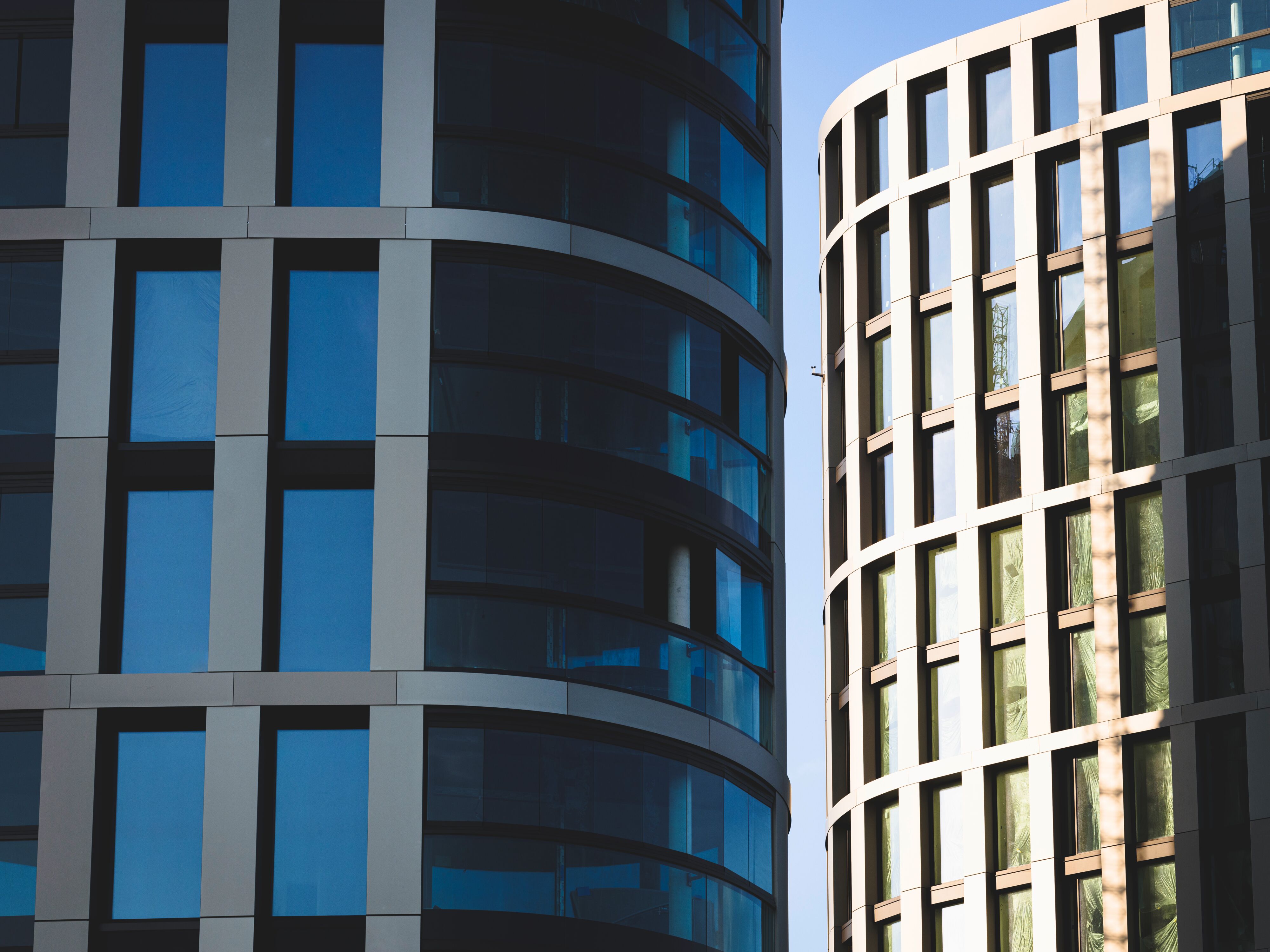 Frankfurt's new skyline presents itself from its most beautiful side: it is already clear how the HAFENPARK QUARTIER will shape the face of Frankfurt. Work on the award-winning residential towers designed by star architect Hadi Teherani is drawing to a close. Completion of the façade in the color “champagne” is in the final stages. Tiles and parquet flooring have already been laid in the apartments and the kitchens have been measured. Assembly is being carried out from several climbing mast platforms at the same time, so that the construction progress can be seen from afar.