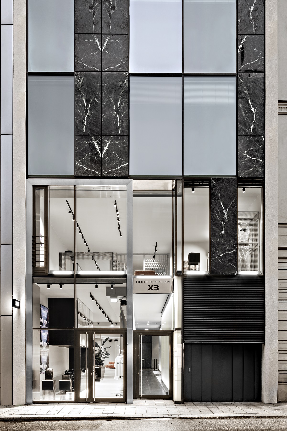 For the new store, the streetwear brand once again collaborated with the architects of Schwitzke [&] Partner, who transferred the proven LFDY showroom concept to the Hamburg space, incorporating the uniqueness of the location. For example, the Düsseldorf-based team of architects continued the iconic elements of the modern exterior facade inside, picking up on stainless steel, galvanized steel and green marble at the checkout and booths. Designer pieces like the modular De Sede sofa by Ubald Klug become eye-catchers and create noble contrasts to the dark-stained wood. Another special feature: in addition to store and event space, the LFDY store offers room for art. Exhibits include urban photographs by artist Paul Hutchinson and mirror art by Victor Bonato.