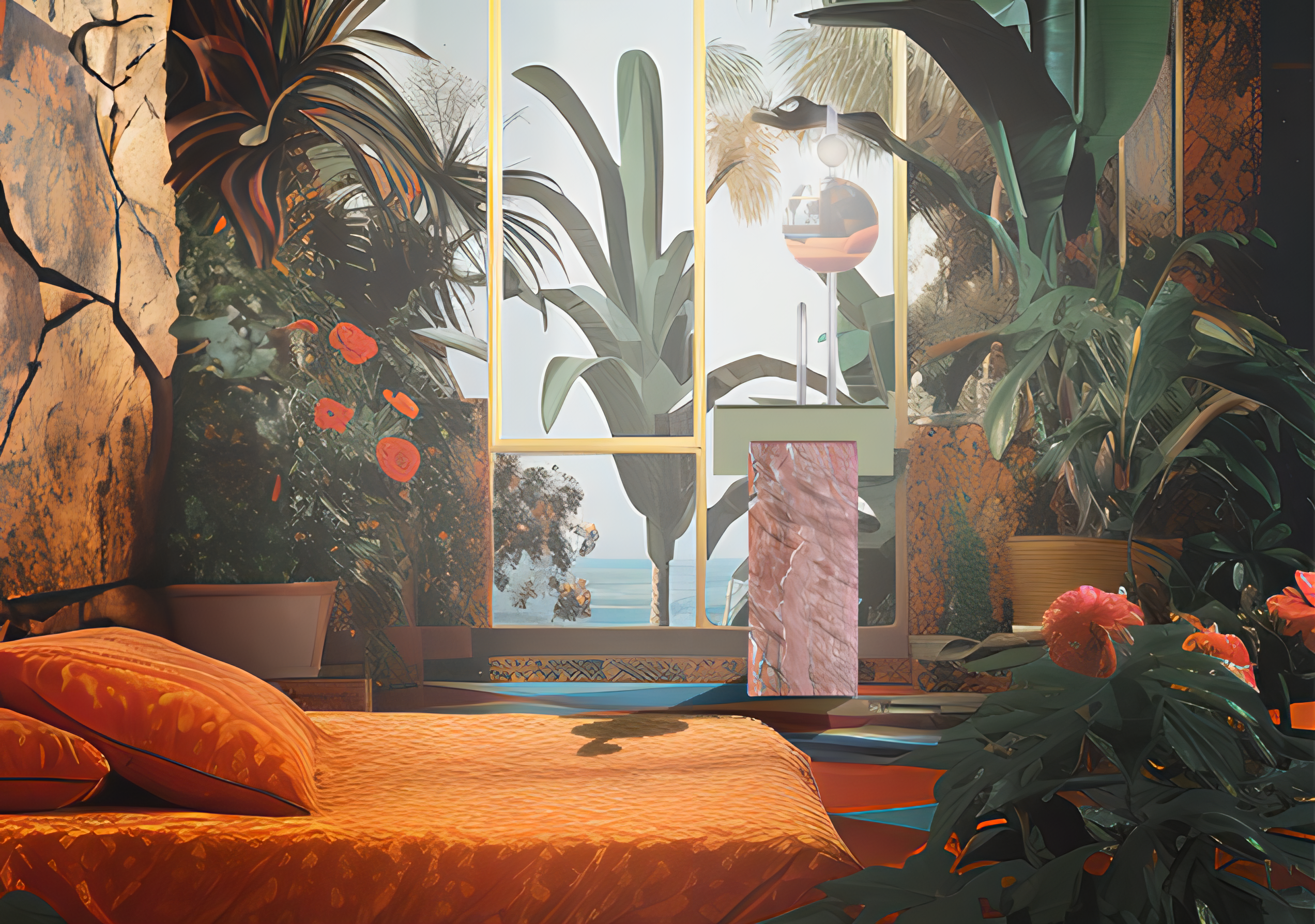 The T-shaped composition of furniture and countertop basin is broken up by the harmonious interplay of the permanently installed fitting, mirror and lamp, creating a delicate aesthetic. The combination of exquisite color nuances and exceptional natural stone completes the overall sculptural aesthetic. The name "TIORE" is an artistic fusion of the Italian words "Torre" (tower) and "Fiore" (flower) and verbally underlines the elegant fusion of design and technical sophistication that characterizes this extraordinary work. The striking silhouette is reminiscent of a tower, while the organic shapes and gentle curves of the fitting evoke the association of a flower in full bloom.